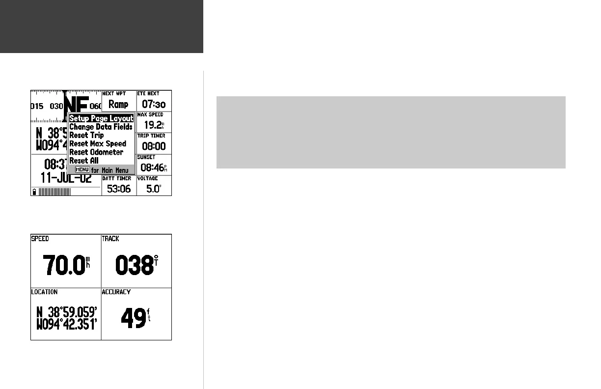 the GPSMAP 196, and refer to Appendix D for defi nitions of each data fi eld term.