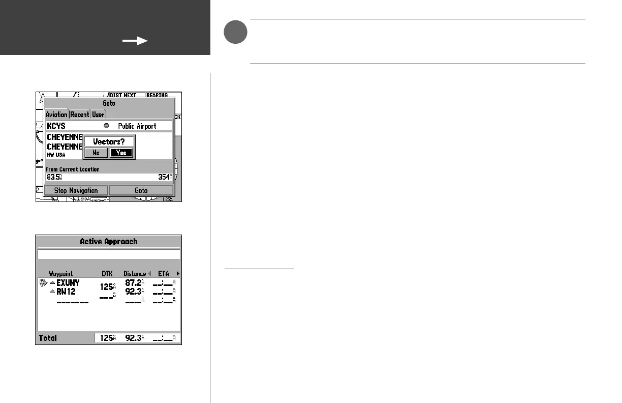 line. On the Active Route Page, a ‘ Vector to Final’ symbol will appear adjacent to the fi rst approach