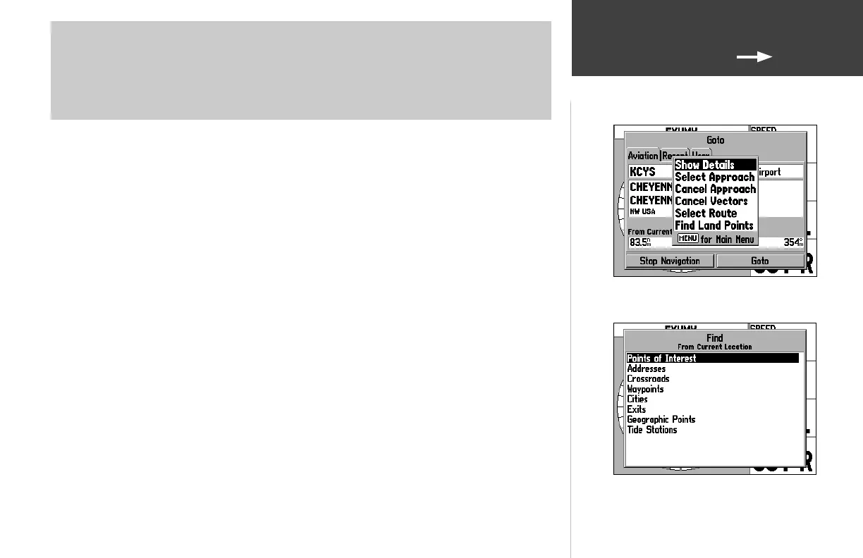 • Find Land Points— displays the same Find Menu as the NRST/FIND key (see page 54). Use this