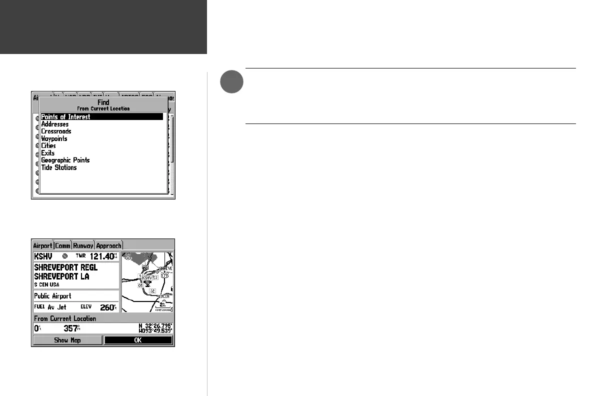 3. For airports, use the ARROW KEYPAD to select the fi le tabs across the top of the waypoint informa-