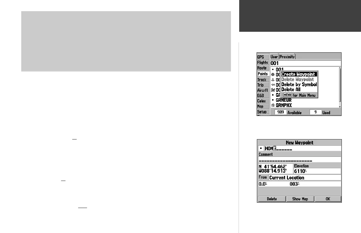 the ENTER/MARK key can also be used to create a user waypoint at your present position.)