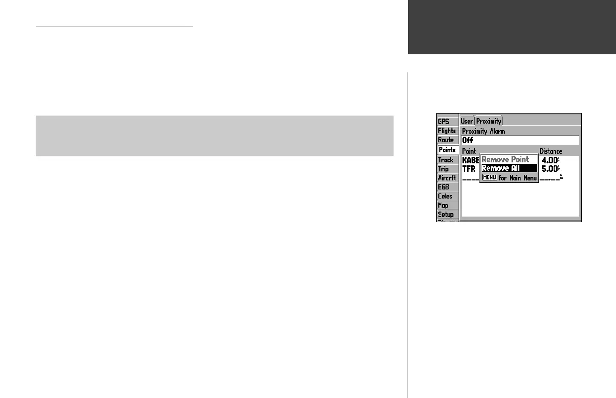 To display the Points Tab: Proximity Waypoint options, press MENU (with ‘Proximity’