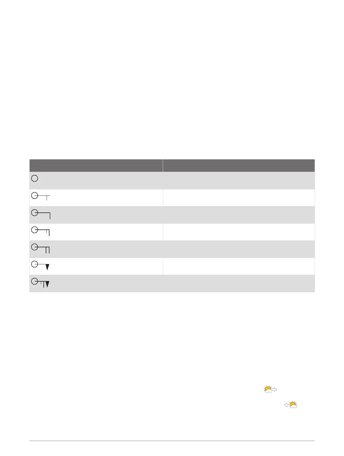 indicates the wind speed. A short line represents 5 knots, a long line represents 10 knots, and triangle
