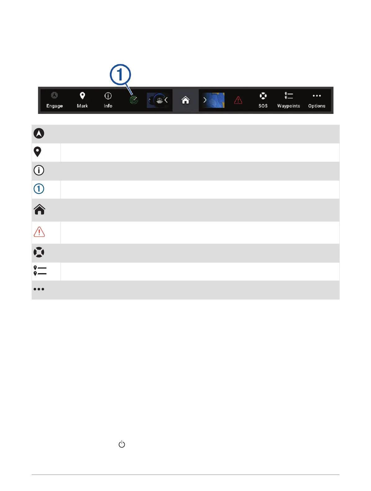 The menu bar along the bottom of the screen provides access to many functions of the chartplotter, the options