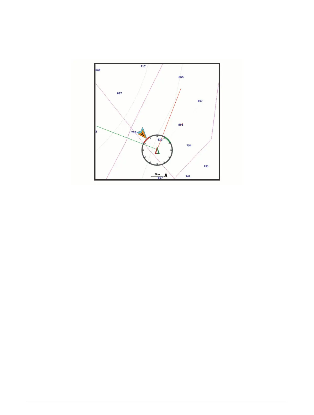 When in sailing mode (Setting the Vessel Type, page 14), you can display laylines on the navigation chart.