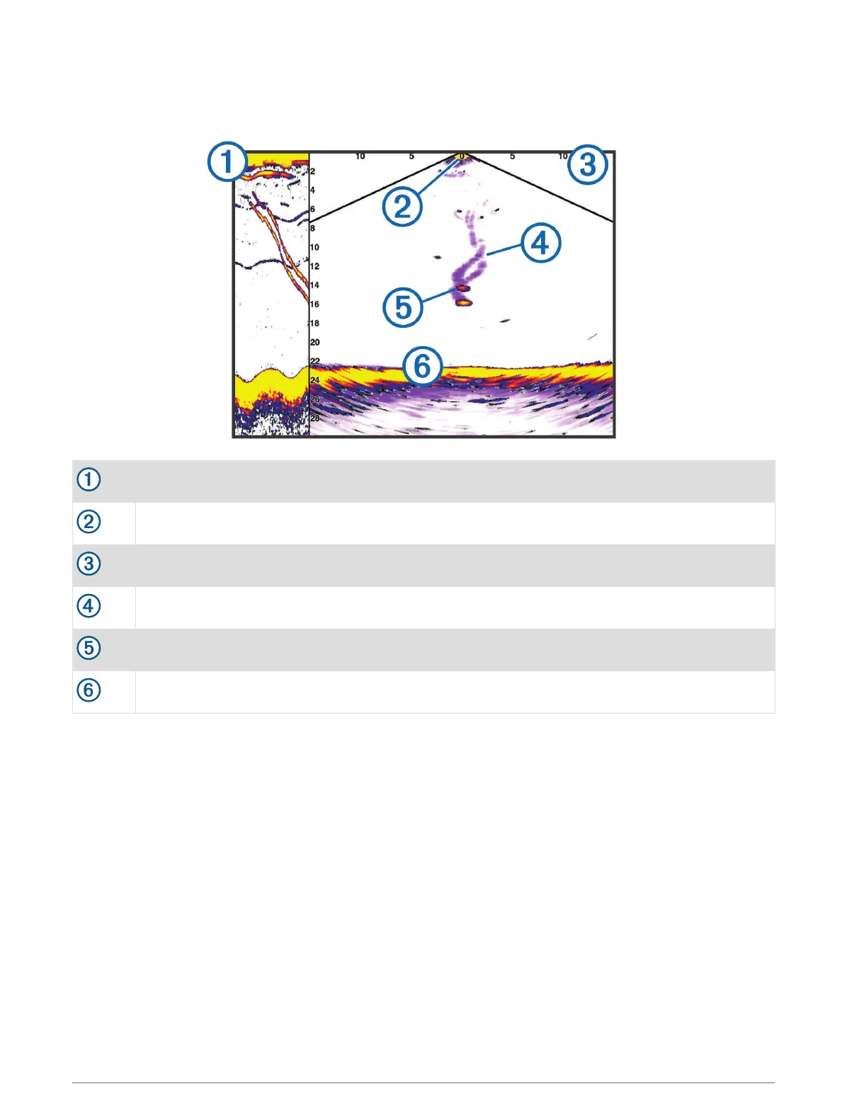 This sonar view shows a two-dimensional view of what is below the boat and can be used to see a bait ball and