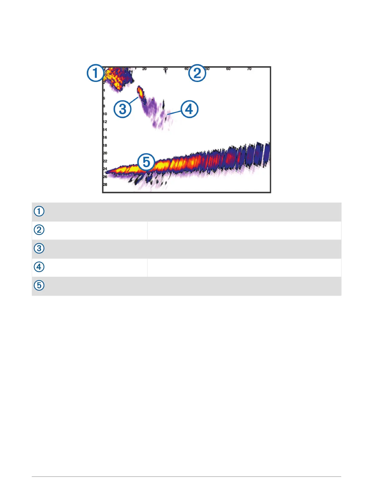 This sonar view shows a two-dimensional view of what is in front of the boat and can be used to see a bait ball
