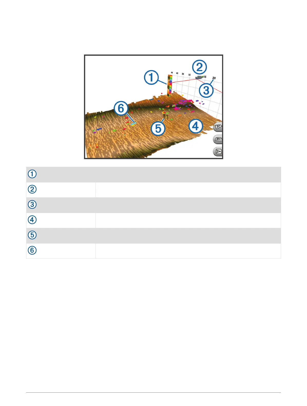 entire water column in 3D, from the bottom to the top of the water. This view is used for finding fish.