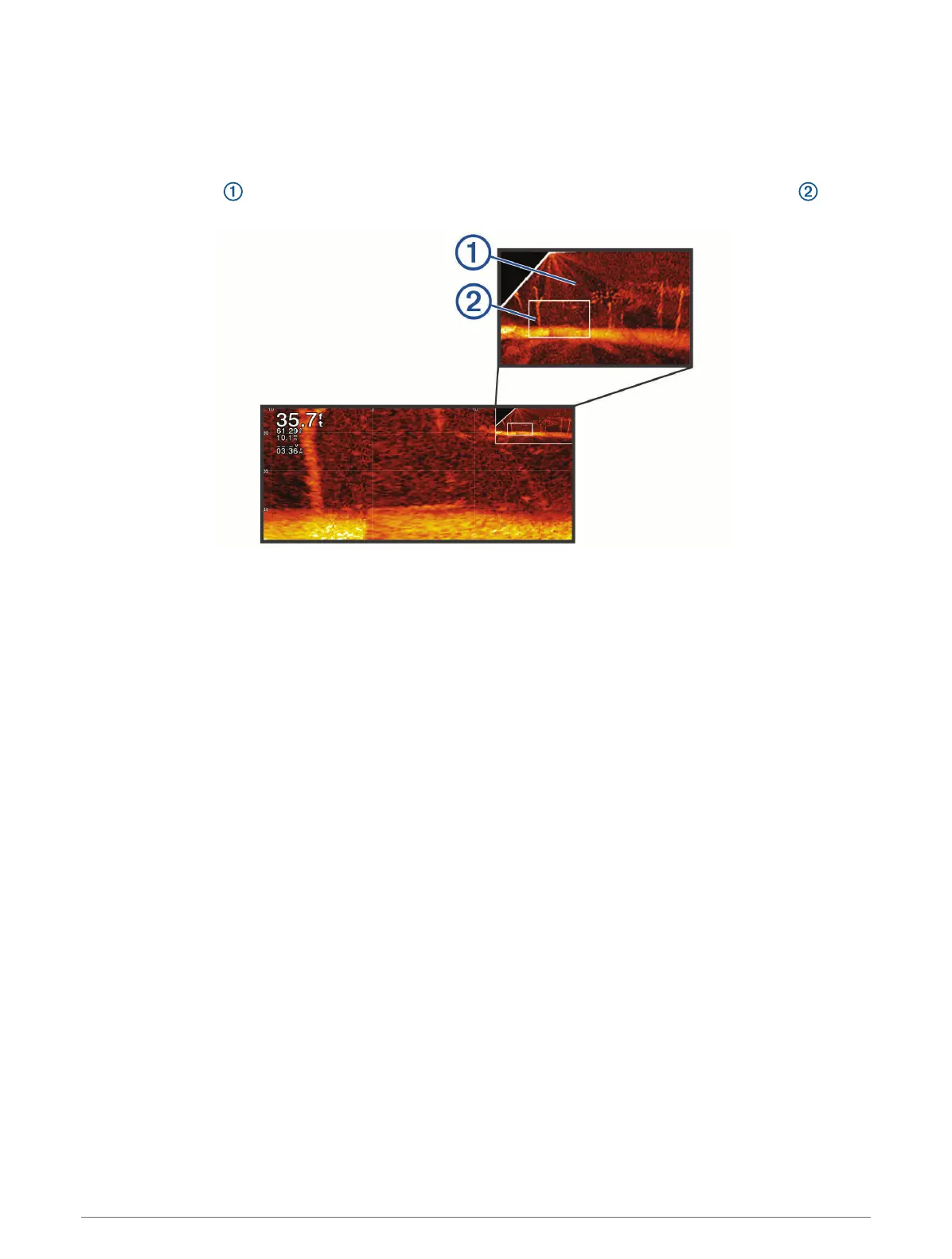 1 From a Panoptix LiveVü or LiveScope 2D sonar view, spread two fingers apart to zoom in on the area.