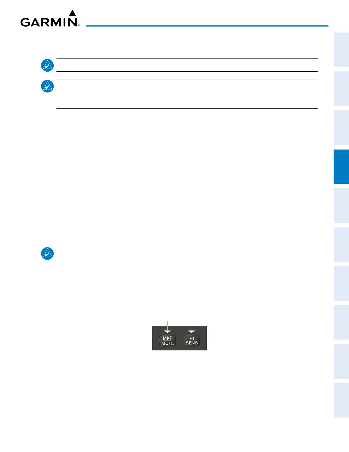 NOTE: The marker beacon indicators operate independently of marker beacon audio and cannot be turned