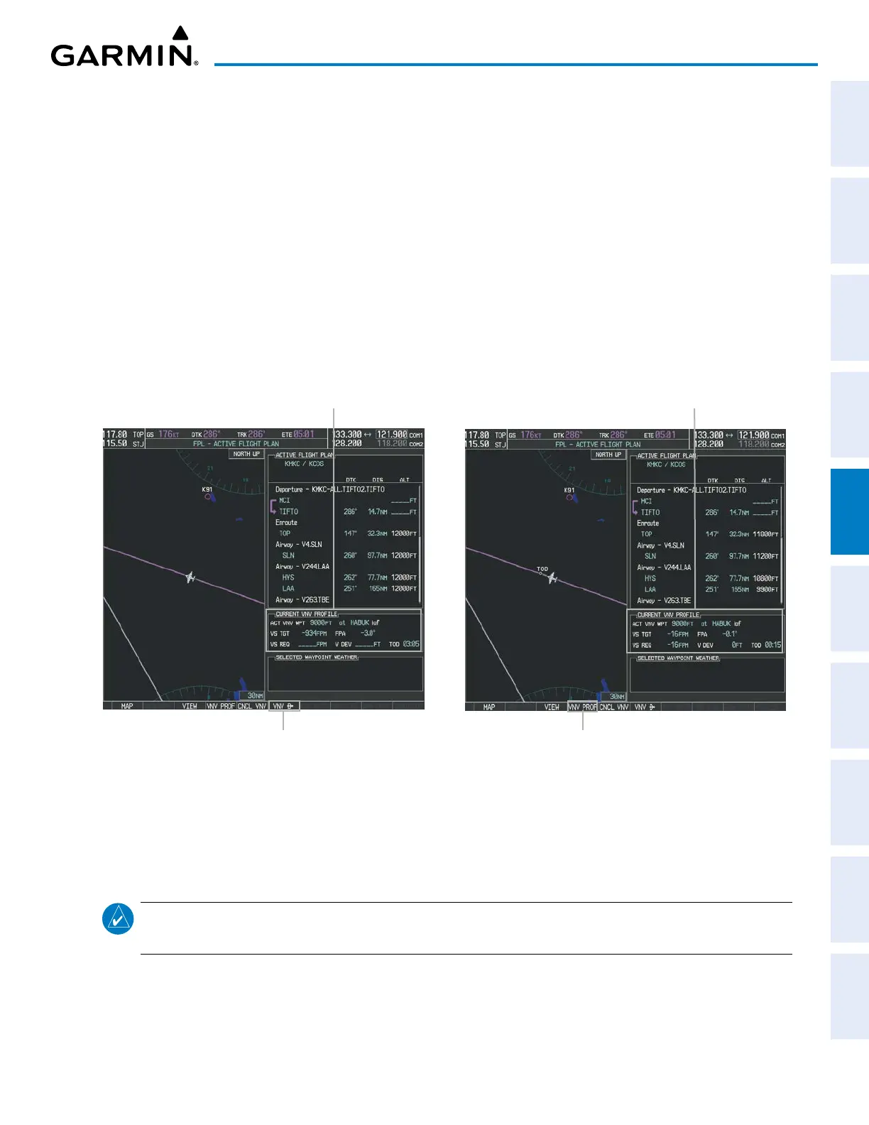 constraint “designated” for vertical guidance. Pressing the VNV ¯ Softkey on the FPL – ACTIVE FLIGHT