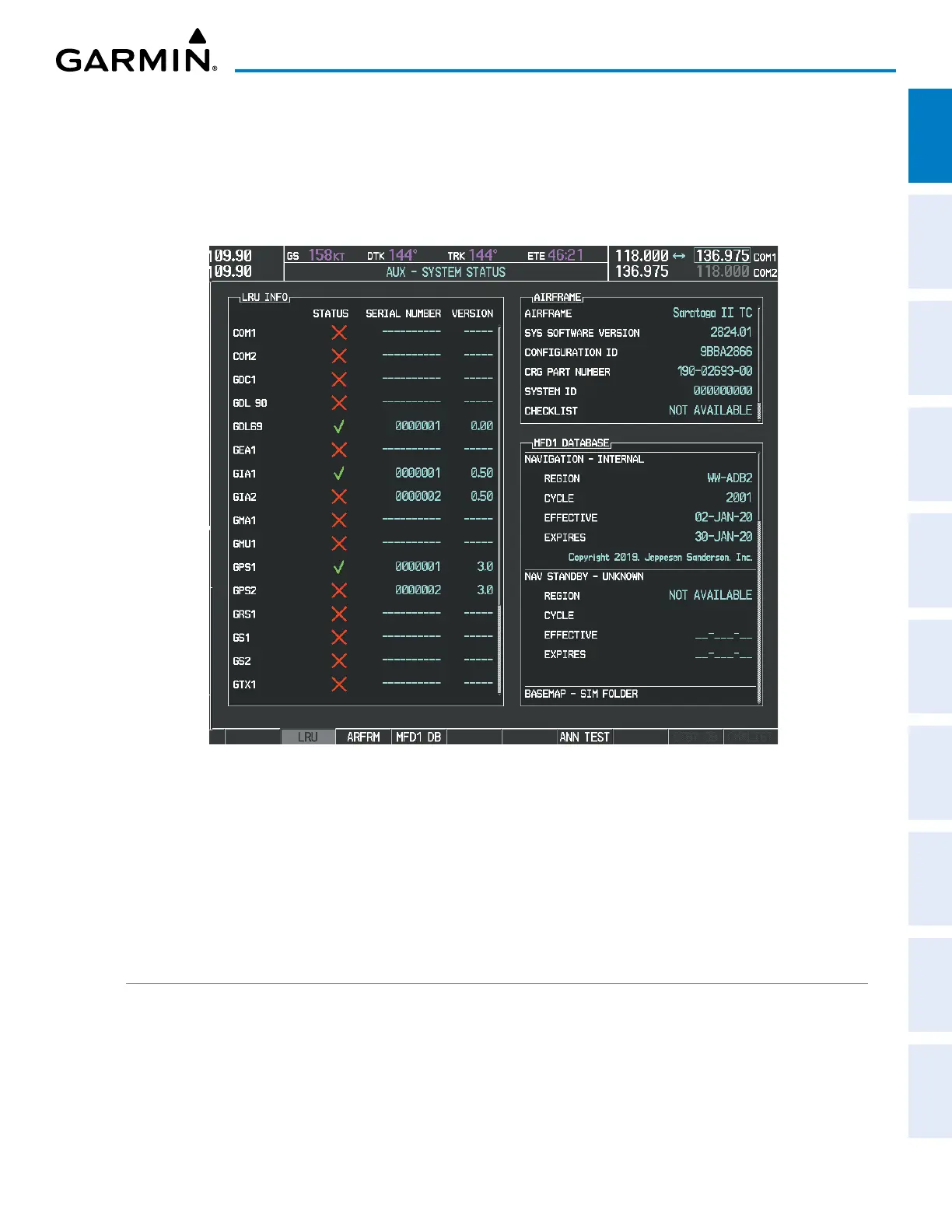 LRUs. Pertinent information on all system databases is also displayed. Active LRUs are indicated by green