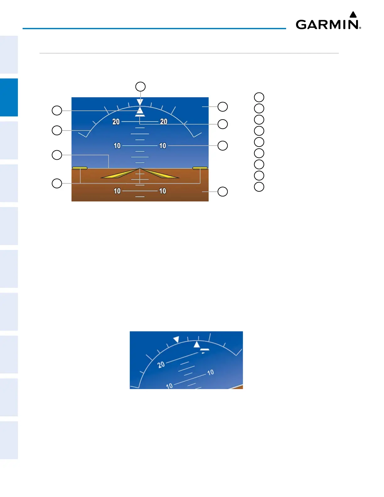 marks at 10˚, 20˚, and 45˚ are shown to the left and right of the zero. Angle of bank is indicated by the position