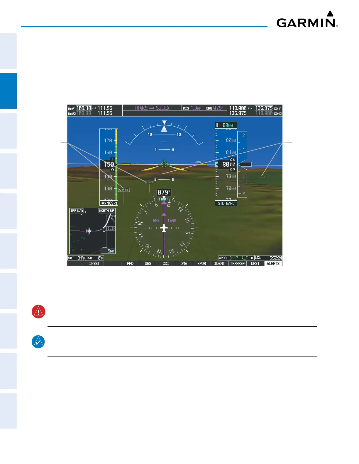 display. When activated, the signs appear on the display when the aircraft is approximately 15 nm from an