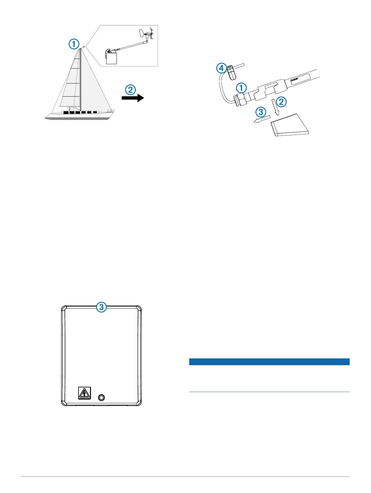 • The wind transducer should be installed facing the front of