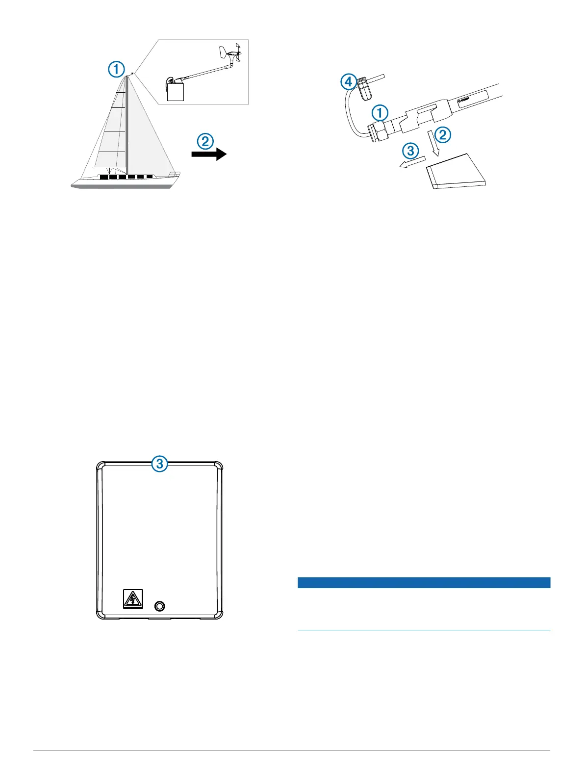 • Det beste stedet for WSI er under dekk, nær skroget, så høyt