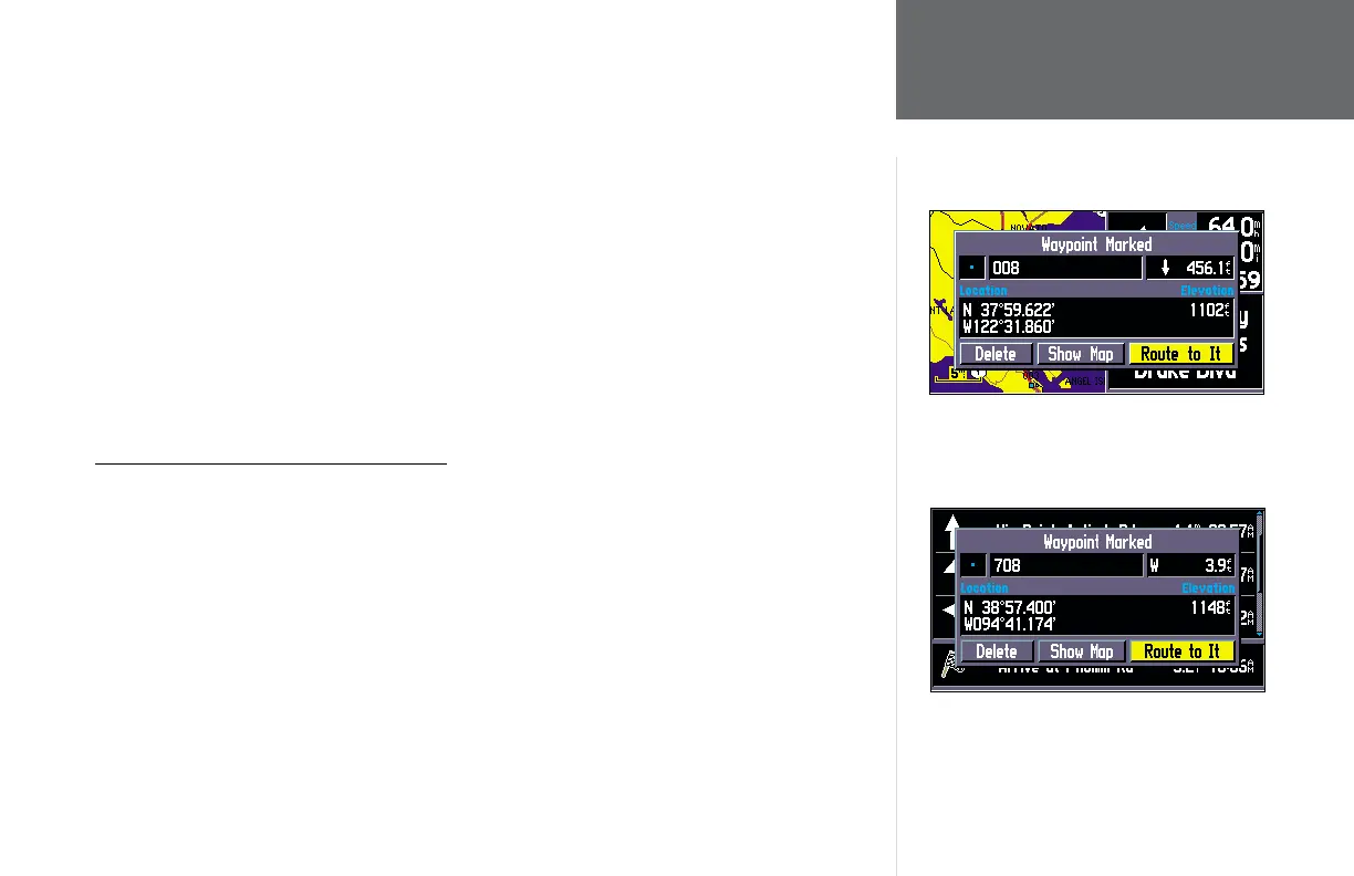 1. Press and hold the ENTER key for approximately two seconds. A ‘ Waypoint Marked’ page will