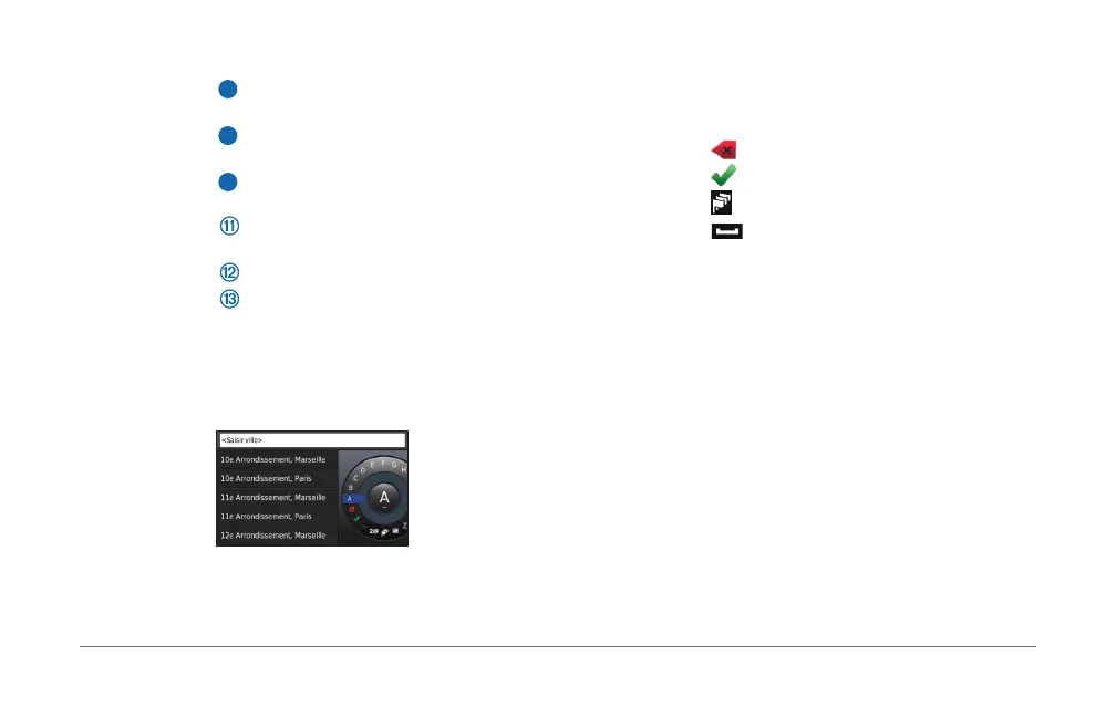 • Sélectionnez ➒ pour afcher les changements de direction,
