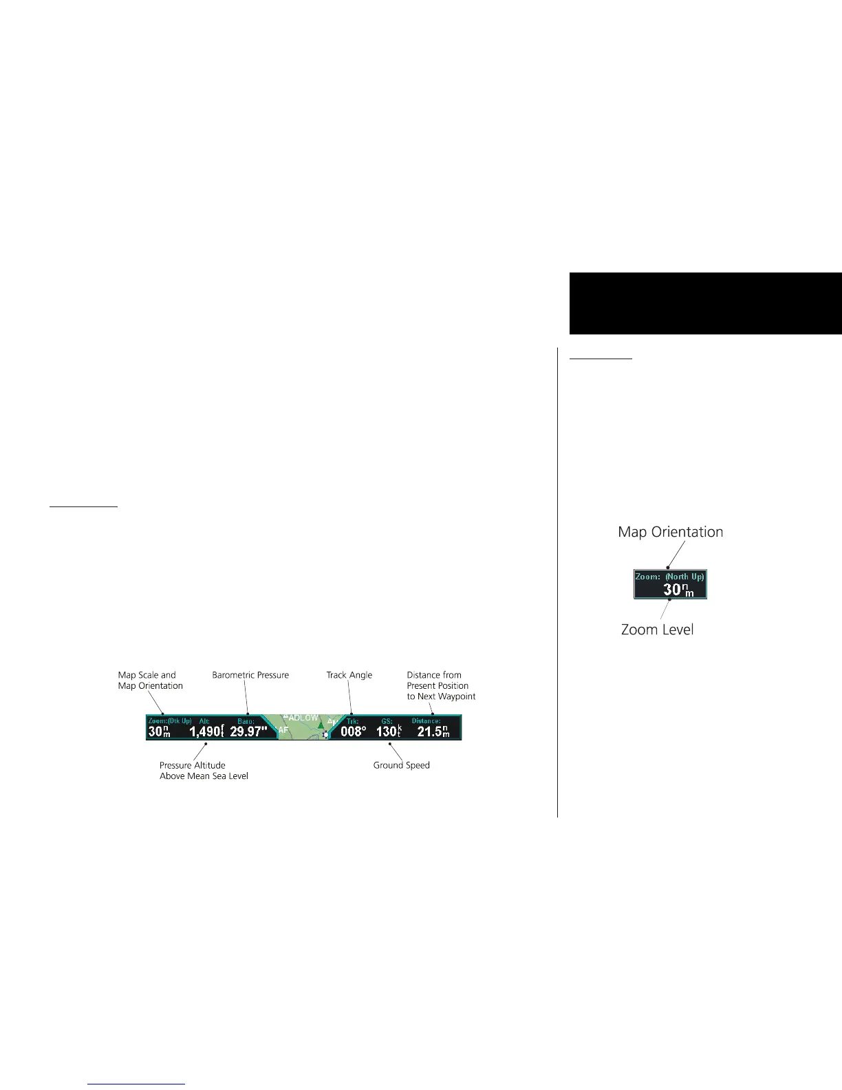 current “TO” waypoint on the screen. When approaching the waypoint, the zoom level will not drop below 1