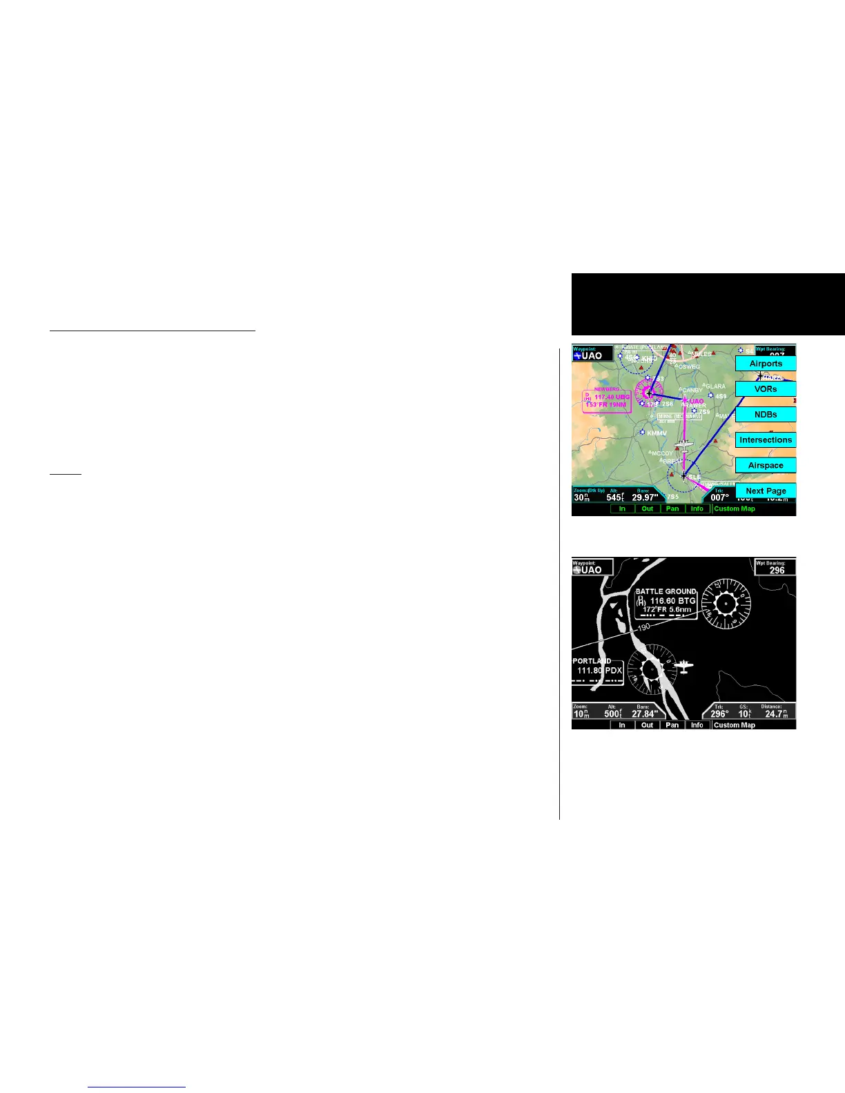 You can turn the display of VOR and ILS information in the Custom Map page on or off. VOR and ILS infor-