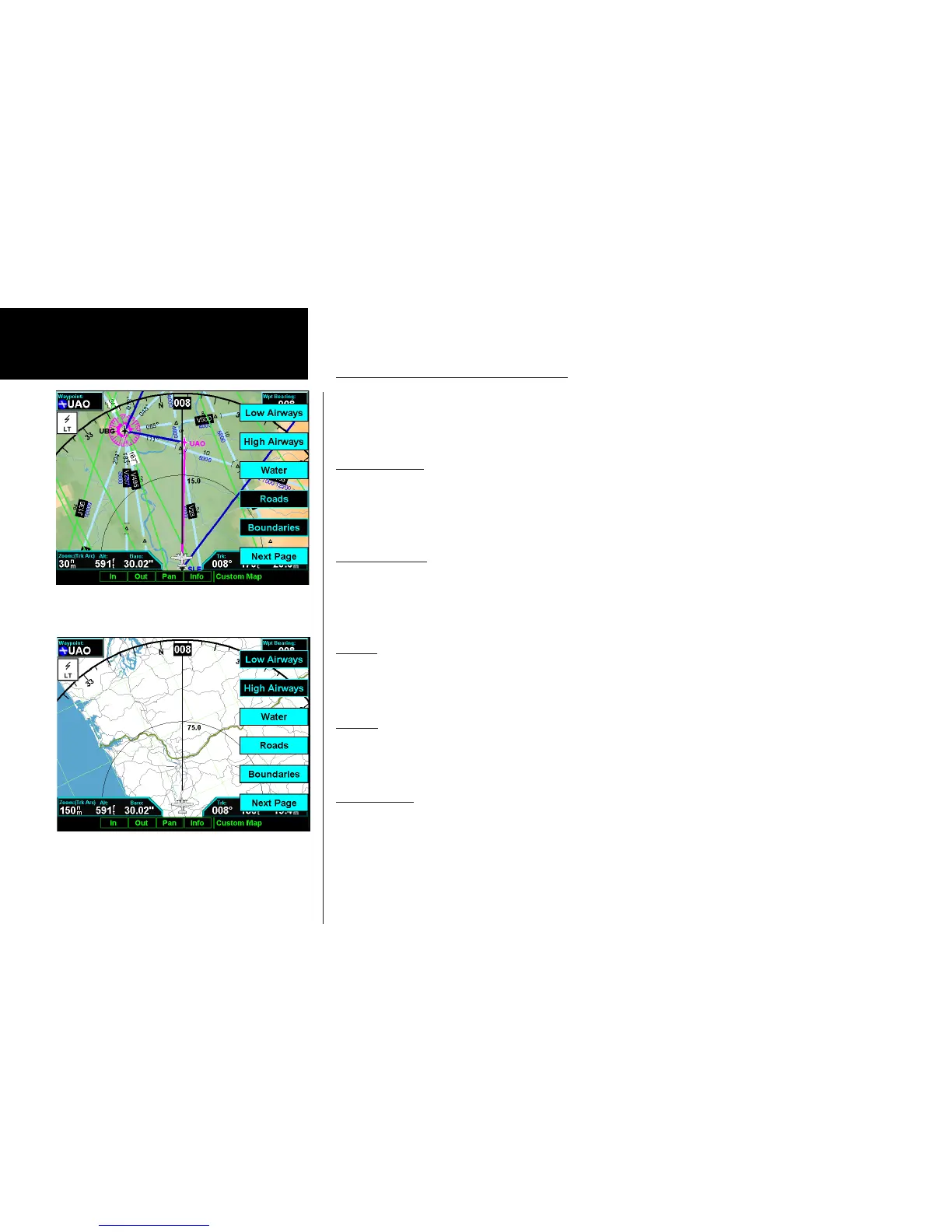The third option page of the Custom Map function lets you select options for the choices of Low Airways,