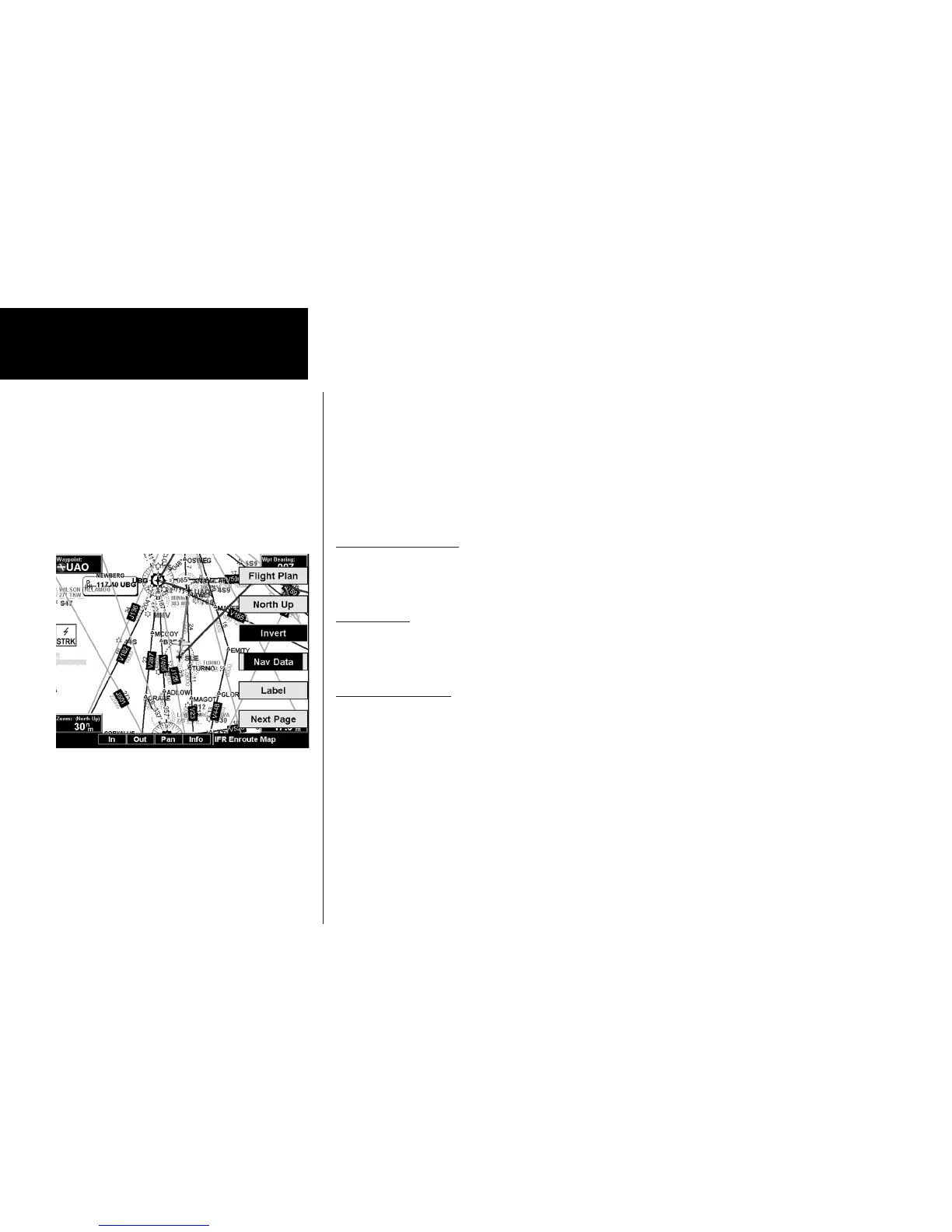 of options available for the IFR mode include Flight Plan, map orientation, Invert, and turning labels on or off.