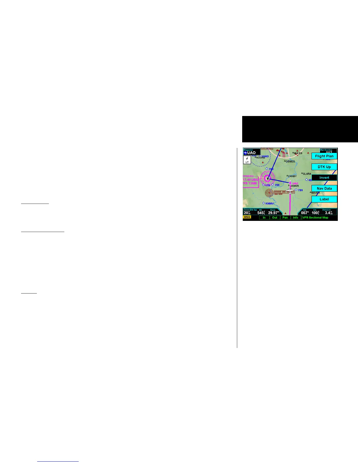 The Flight Plan option controls the display of the Flight Plan course line. Pressing the MENU ITEM key next