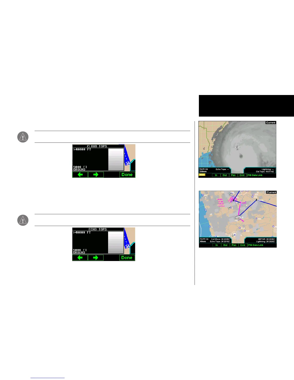 can not be displayed at the same time. Selecting Echo Tops automatically disables Cloud Tops.