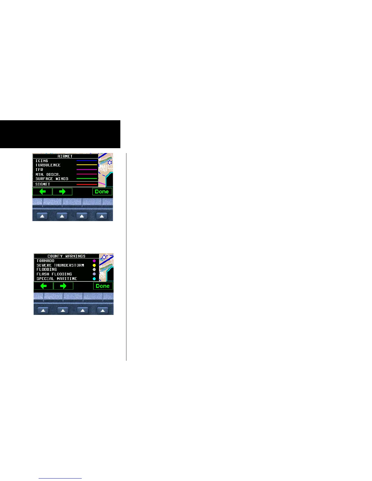 When enabled, the following AIRMETs are available for display: