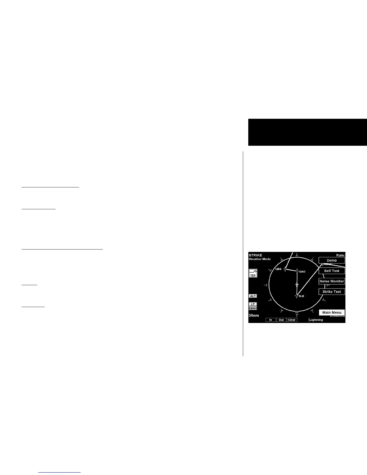 the Stormscope, Noise Monitor, and Strike Test. The last option selection takes you back to the first page of