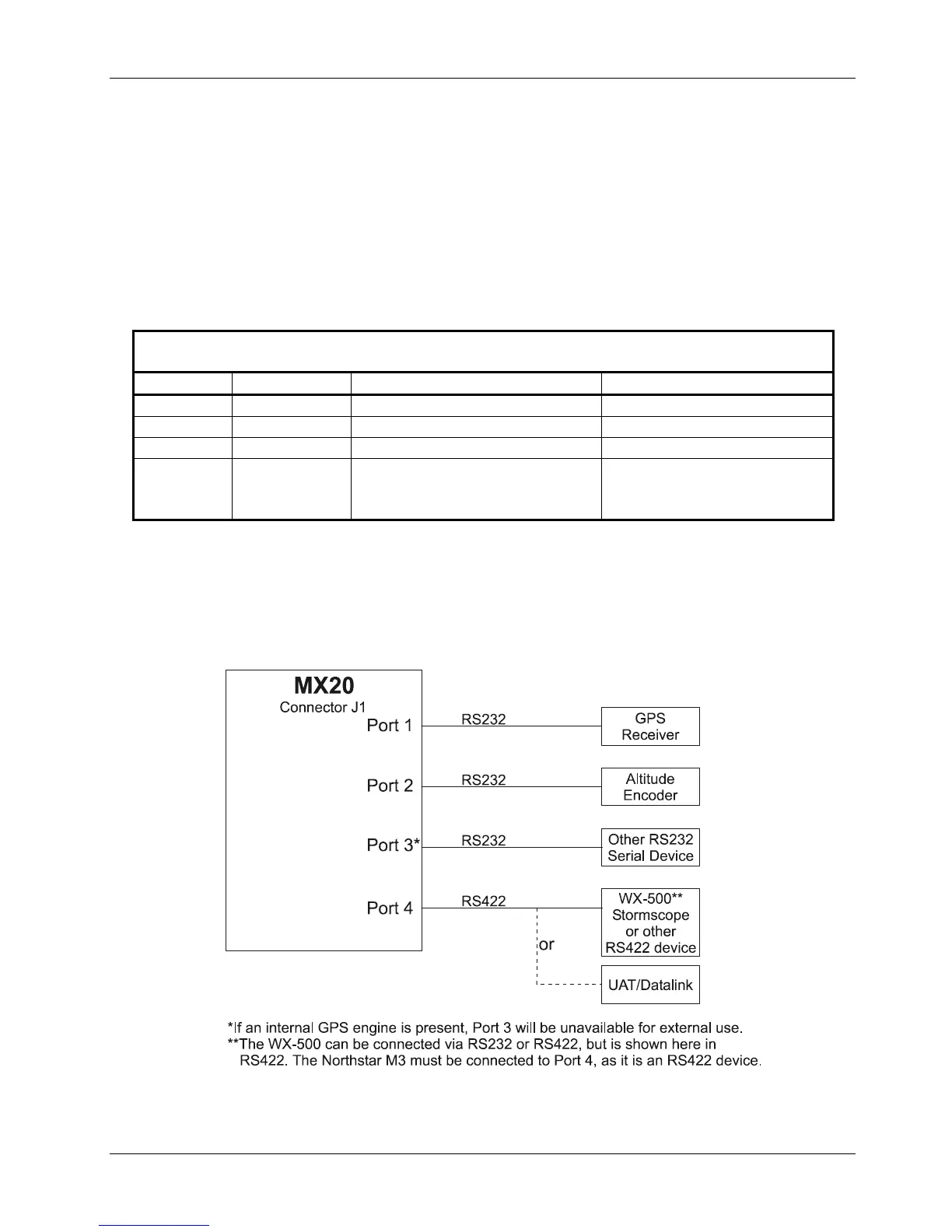 ** If the MX20 is configured with an internal GPS engine (430-0270-0( )), Port 3 is not available for external
