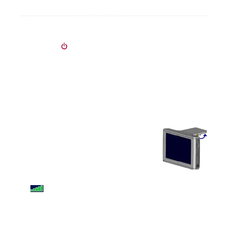 3. Turn on the nüvi. Acquiring satellite signals can take