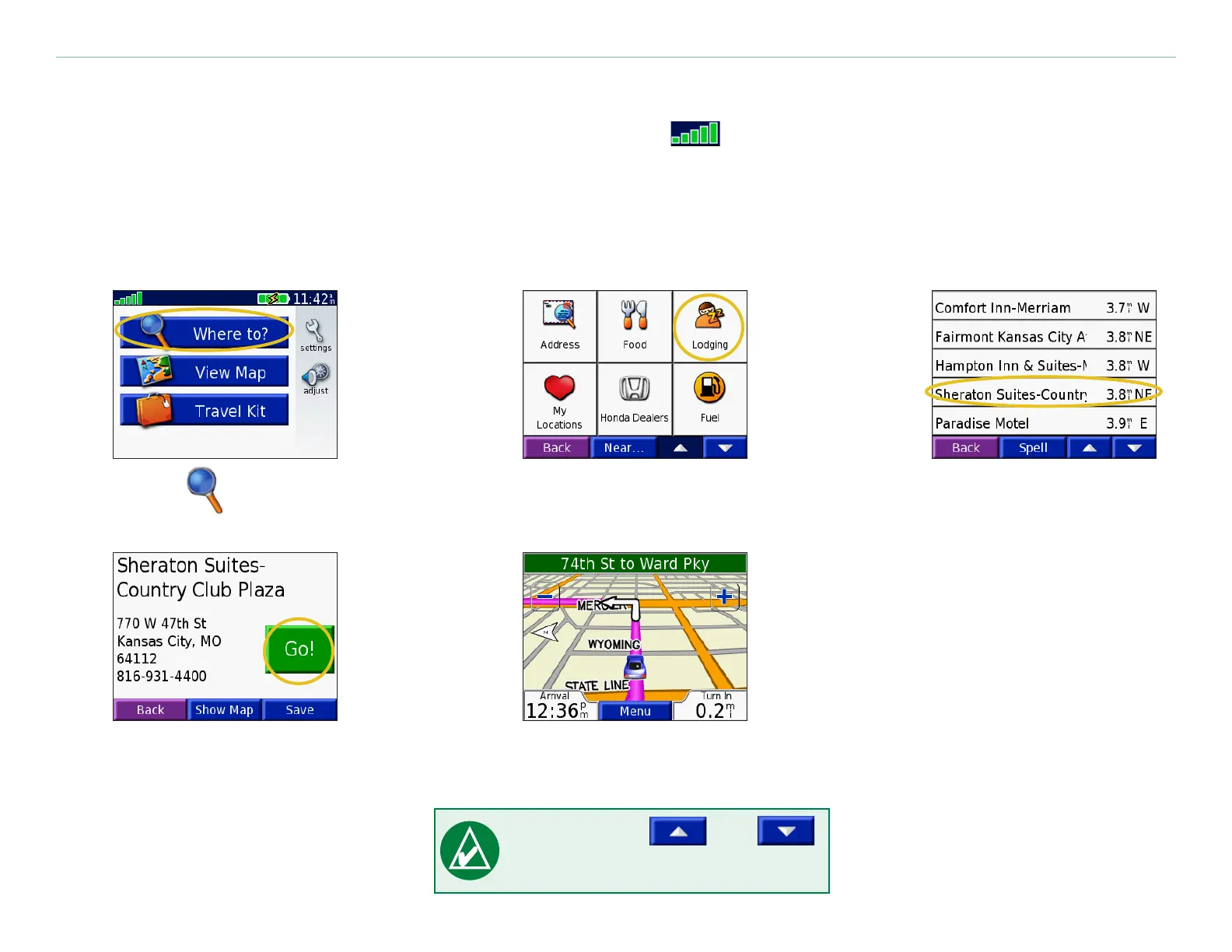 Flip up the antenna on the unit to get satellite signals. The bars in the upper left corner represent the