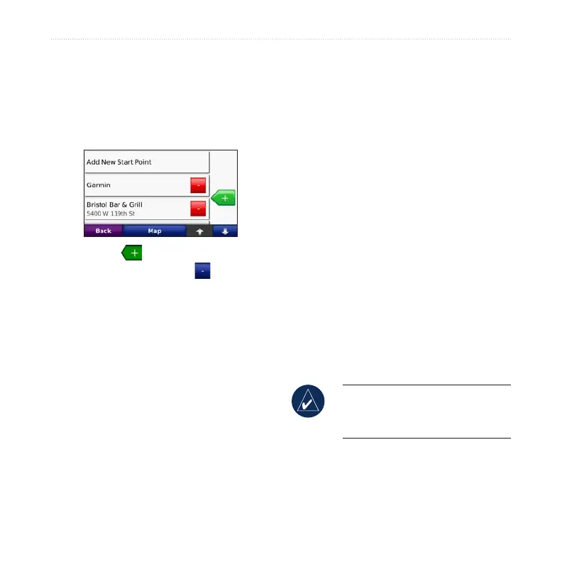 to your route. Touch to remove