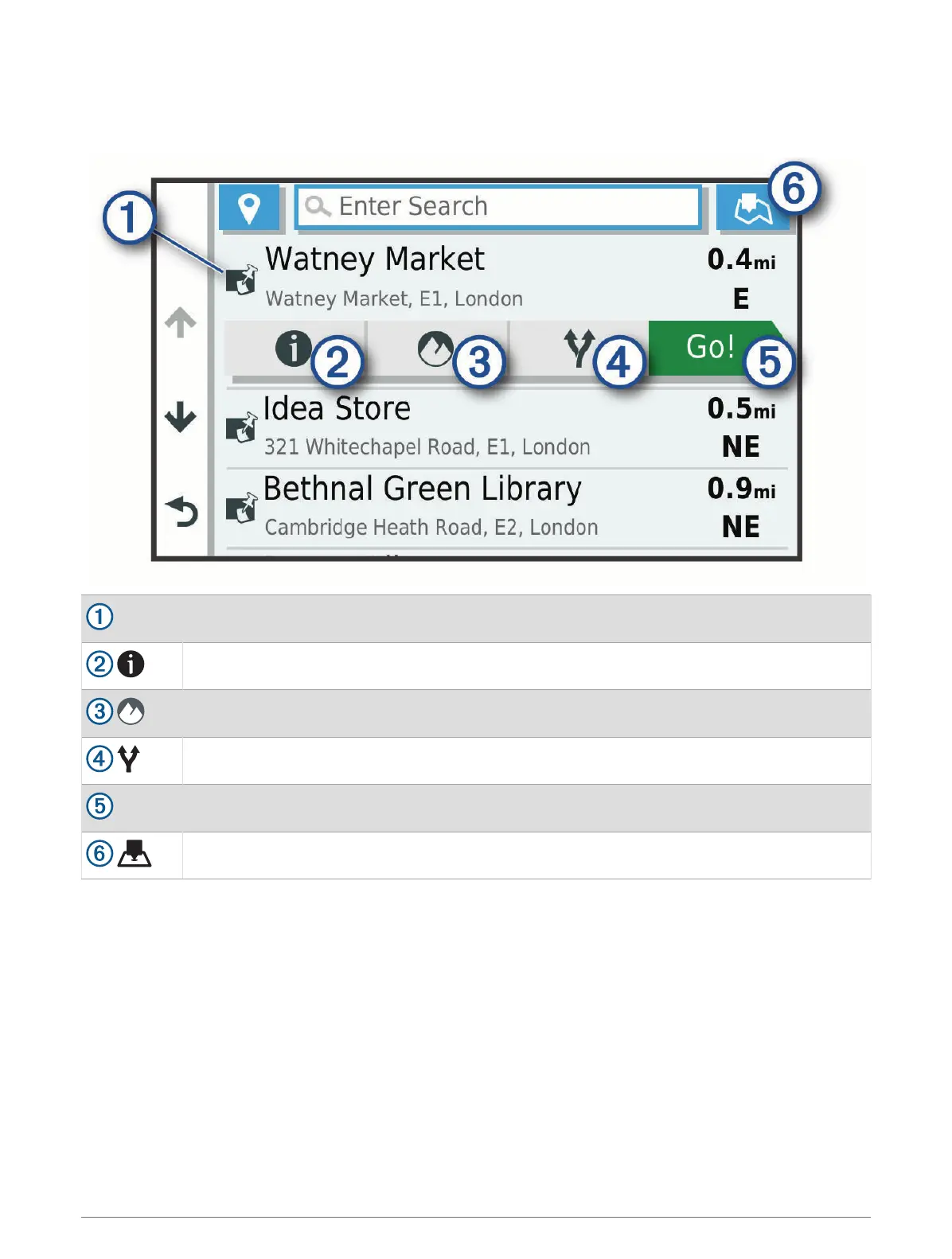 By default, the location search results appear in a list, with the nearest location at the top. You can scroll down