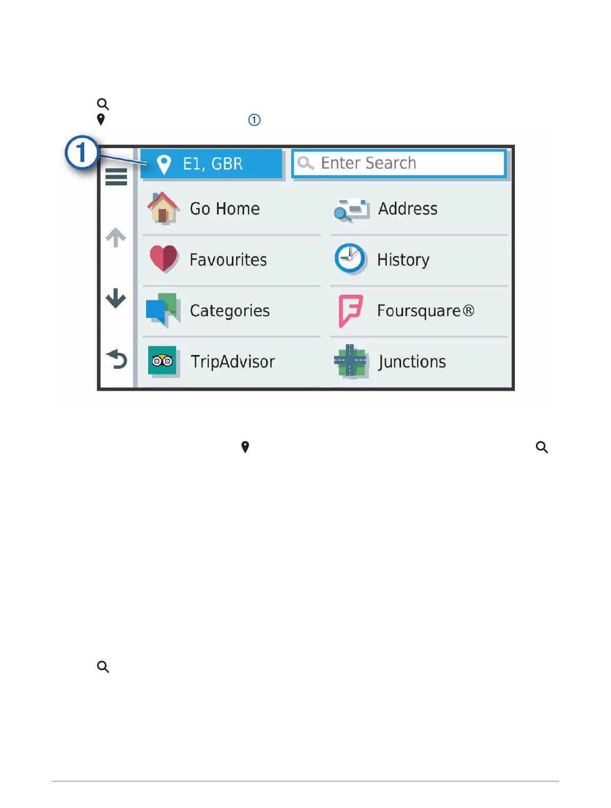 By default, the device searches for locations near your current location. You can also search other areas, such
