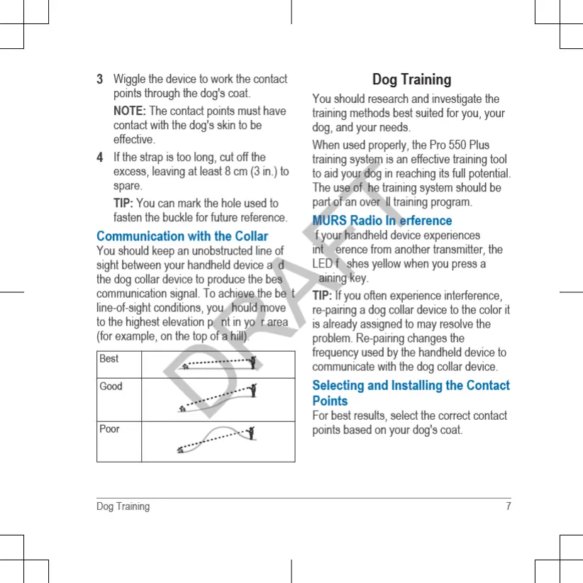 Garmin Pro 550 Plus - Communication with the Collar; Dog Training; MURS Radio Interference; Selecting and Installing Contact Points