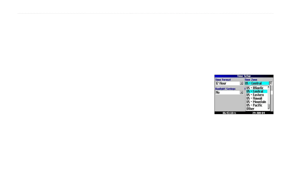 Daylight Savings—turn on (Yes), off (No), or set to Automatic