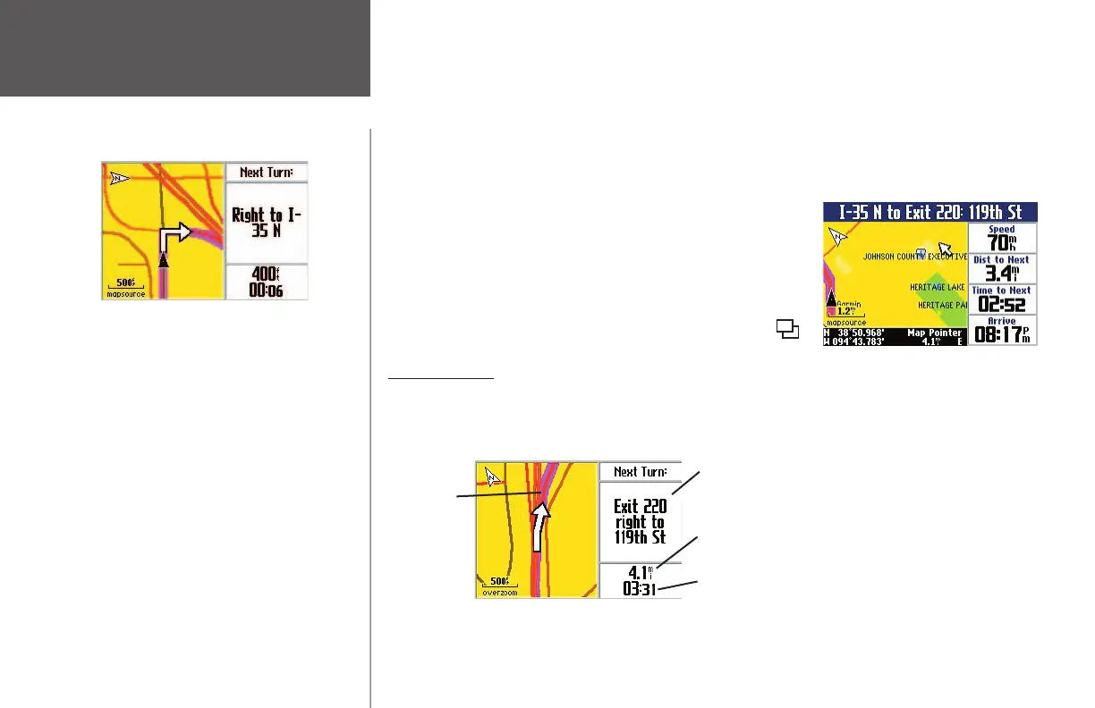 that you are near a turn. When this happens, a Next Turn page appears. It provides a graphic visual and