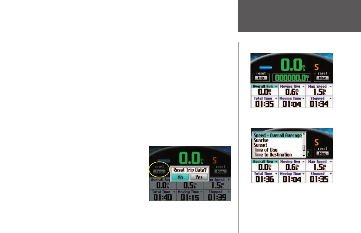 1. Use the rocker pad to select the ‘Trip’ or ‘Max’ buttons on the Trip Information page.