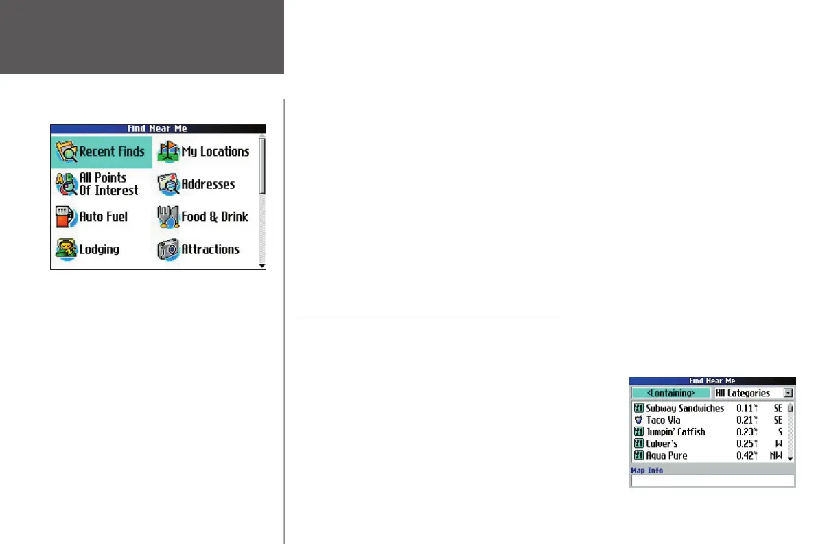 2. From the ‘Find’ page, select an option that will help you fi nd your destination such as ‘Food & Drink,’