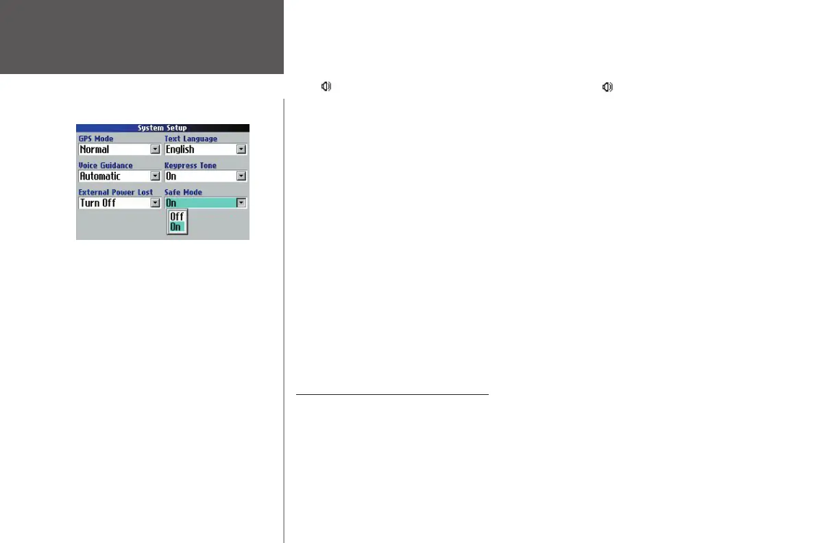 • Automatic: The unit speaks guidance messages during route navigation, as described above. It does