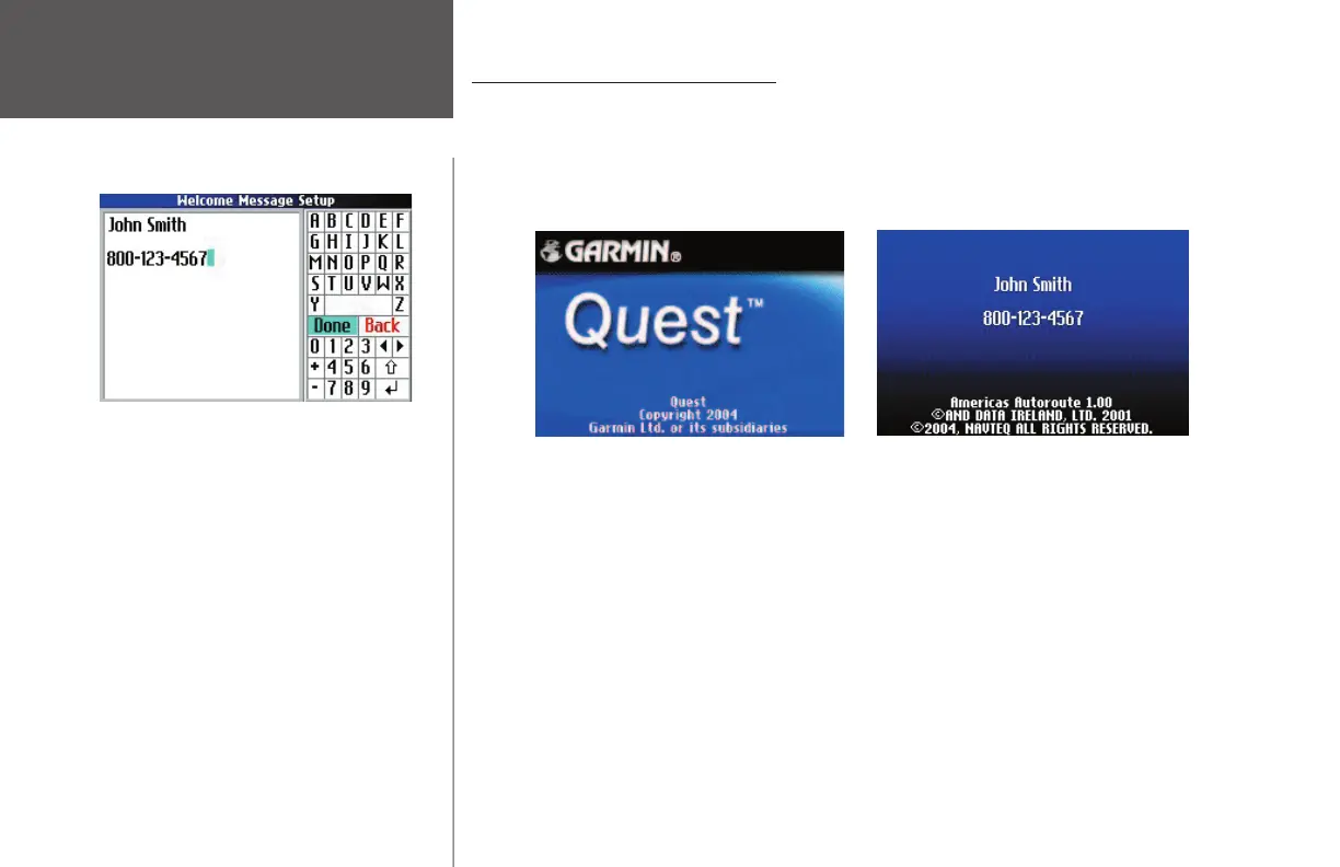 from the Settings page. A Welcome Message Setup page appears. Use the onscreen keyboard to type in your