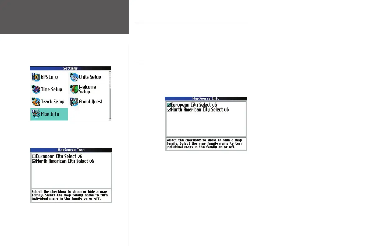 mapping software have been loaded to the Quest. A box appears to the immediate left of each map family