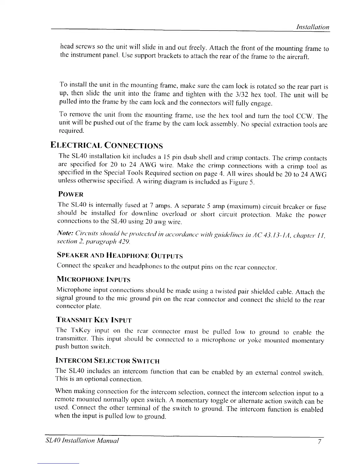 Garmin SL40 - Electrical Connections; Power; Speaker and Headphone Outputs; Microphone Inputs