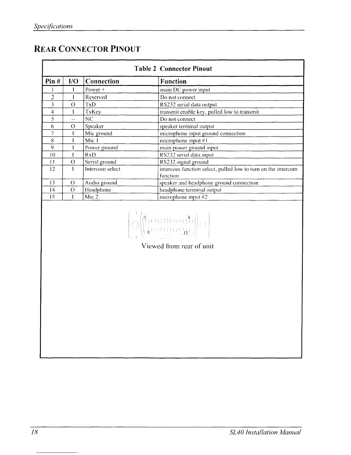 Garmin SL40 - Rear Connector Pinout