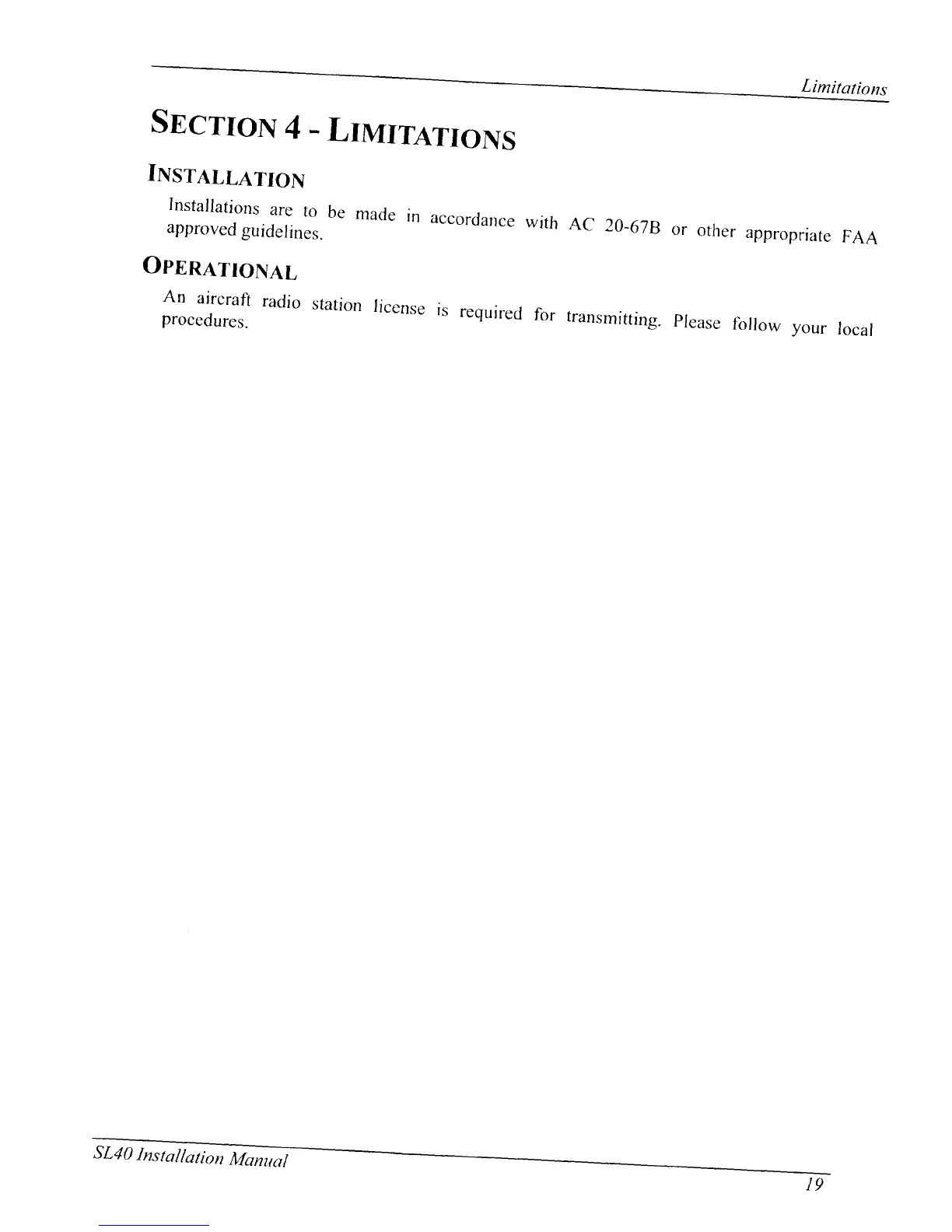 Garmin SL40 - Section 4 - Limitations; Installation; Operational