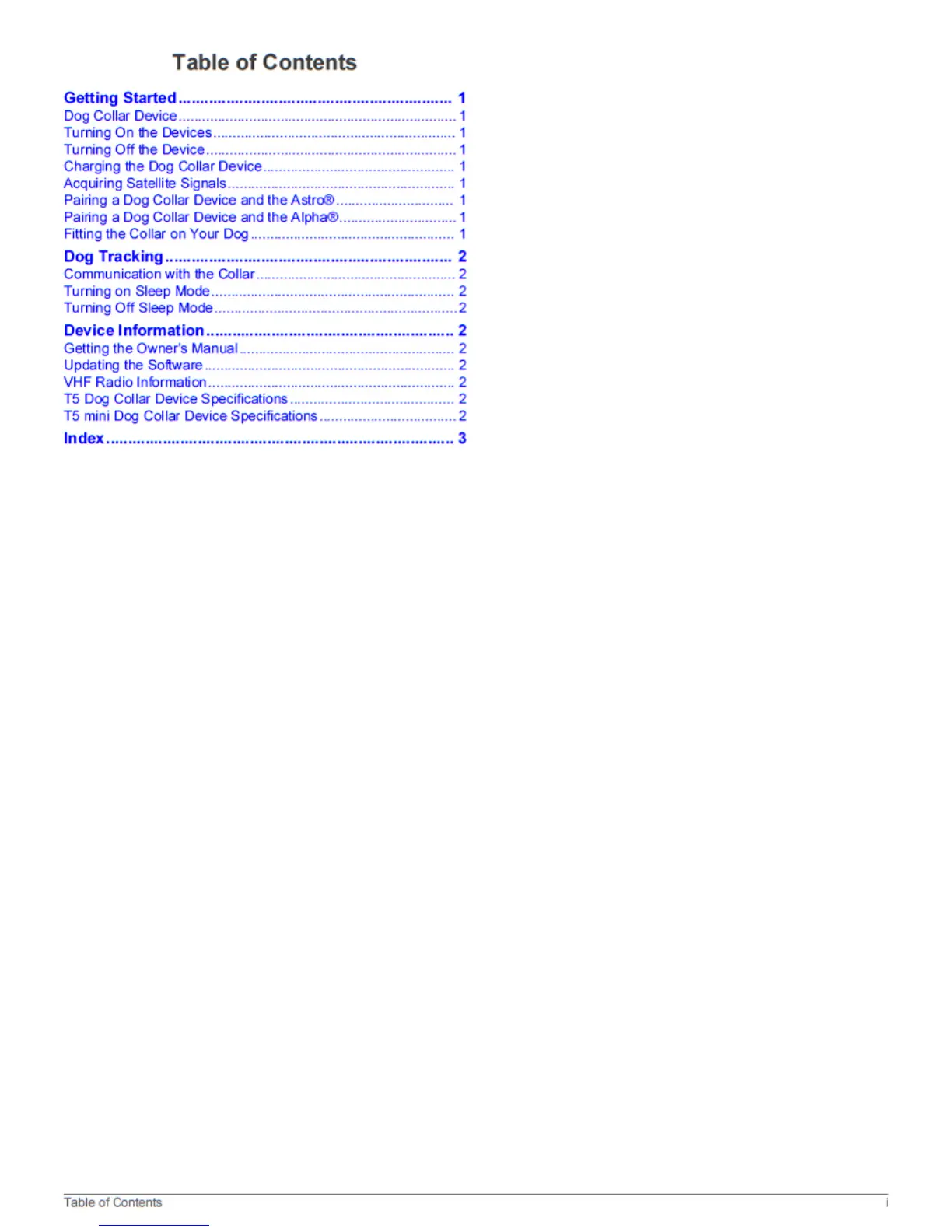 Garmin T5 - Table of Contents