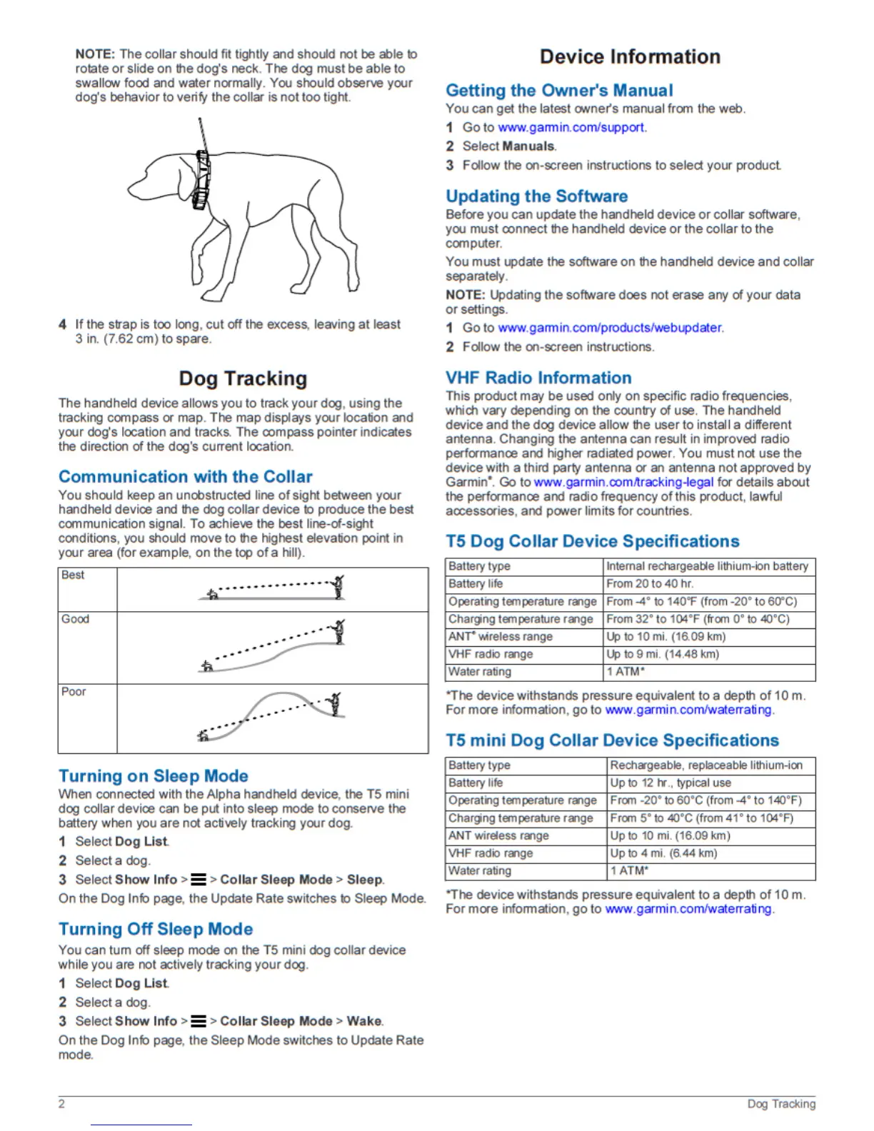 Garmin T5 - Dog Tracking; Device Information; Communication with the Collar; Turning on Sleep Mode