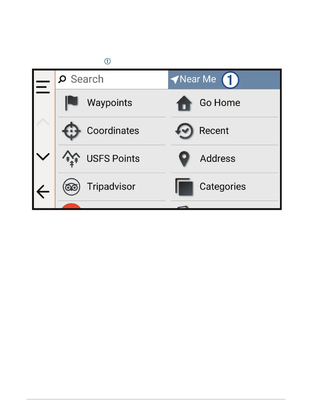 options in the Search menu, the device suggests locations near this area first.